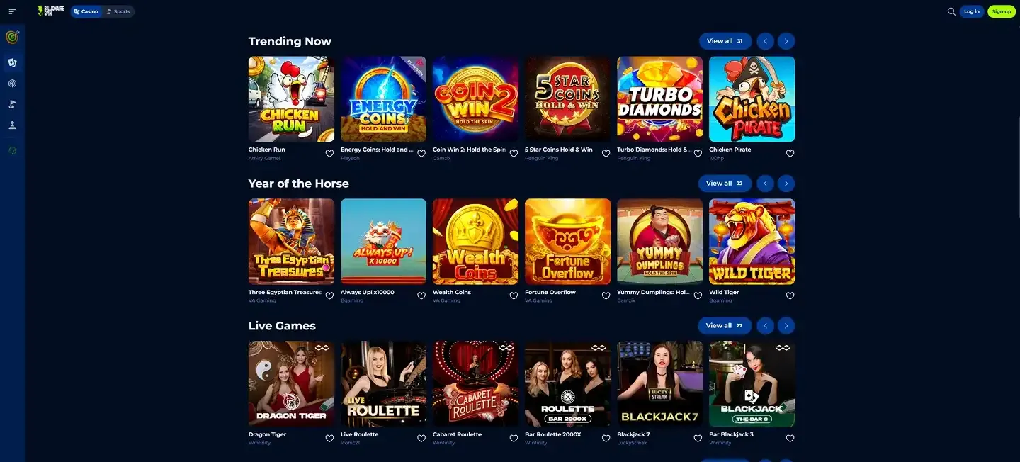 Que tipos de jogos posso encontrar no Billionaire Spin Casino?
