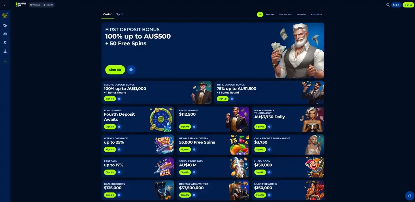 Billionaire spin Casino Rodadas Grátis e Bónus de Recarga
